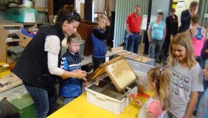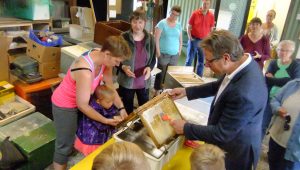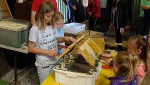 Vi fik slynget lidt honning, lavet bolsjer og et insekthotel. Og der var spørgeskema, hvor børnene kunne vinde en sød lille bi-bamse.